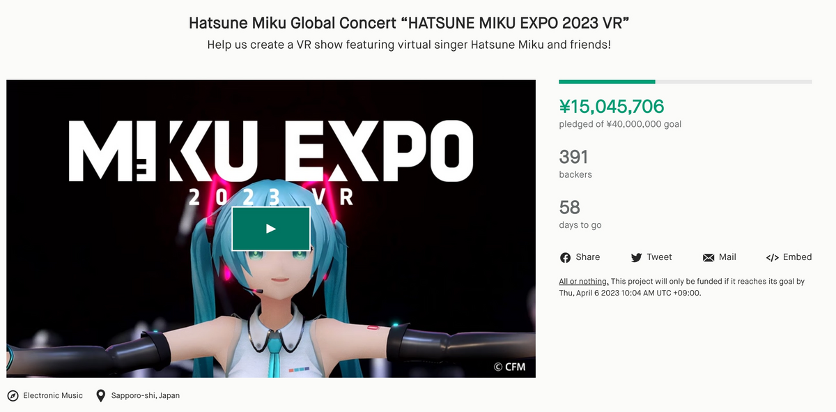 為了舉辦演唱會Crypton也開了群眾集資企劃,若達標就會確定舉辦免費演唱會!